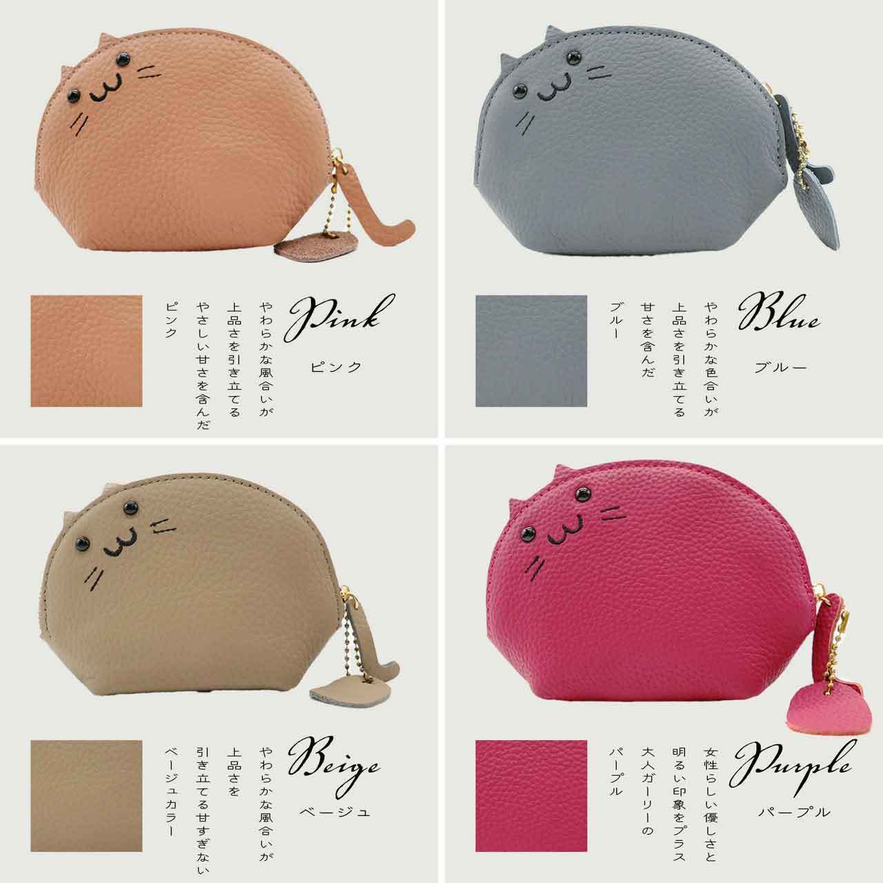 ネコポーチ ポーチ 小物入れ 化粧ポーチ コスメポーチ 牛革 本革 革 レザー シュリンク 小さめ コンパクト 機能的 可愛い おしゃれ やわらか レディース ねこ 猫 ネコ型 プレゼント ギフト PD-364